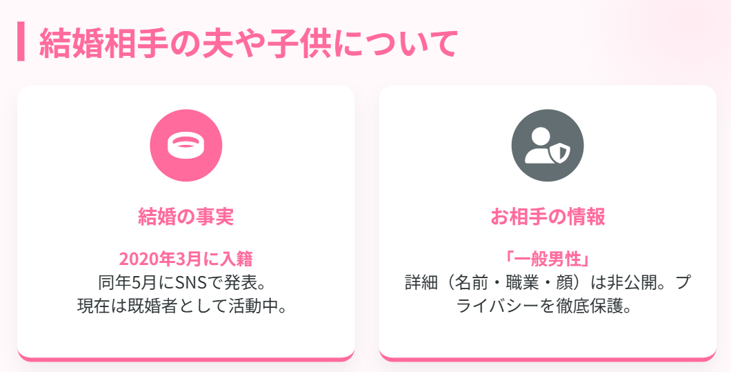 これは噂レベルの話ではなく、ご本人が公表されている事実です。報道ベースでは、2020年3月に入籍され、同年5月9日にSNS等を通じて結婚を発表されました。コロナ禍の真っ只中での発表だったこともあり、記憶に残っているファンの方も多いかもしれません。