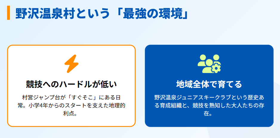 私も以前、野沢温泉へスキー旅行に行ったことがありますが、村の中を歩いていると、子供たちが学校帰りにスキー板を担いで歩いている姿を見かけました。丸山選手も、きっとそんな風景の中で育ったのでしょうね。
