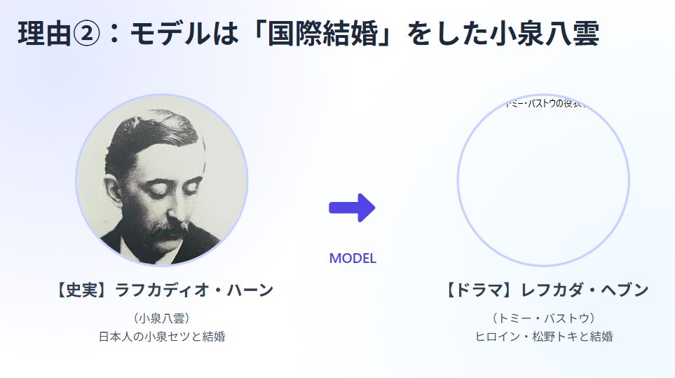- 役のモデルは小泉八雲(ラフカディオ・ハーン)